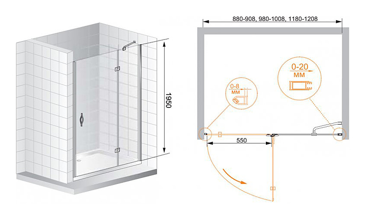 Дверь душевая CEZARES BERGAMO-B-12-120-C-Cr-L-IV 120х195 см, в нишу, распашная