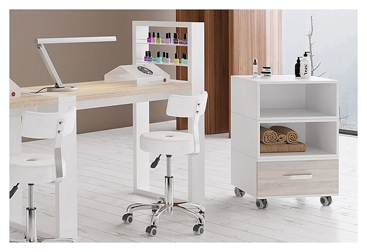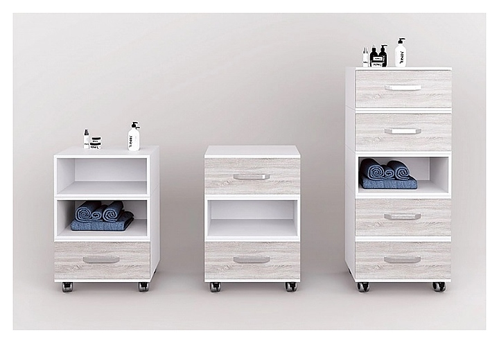 Косметологическая тумба Mertz Bingo 2+1 используется в салонах красоты, тату и маникюрных салонах, СПА-центрах, парикмахерских, и медицинских кабинетах для размещения инструментов, аппаратов, средств и прочих аксессуаров, и рационализации рабочего пространства мастера. Такое оборудование позволяет держать все необходимое под рукой и правильно организовать рабочее место. Модель оснащена 2 глубокими нишами, 1 вместительным выдвижным ящиком, и колесами с резиновым покрытием. Корпус и ящики выполнены из плит ЛДСП. Особенности: