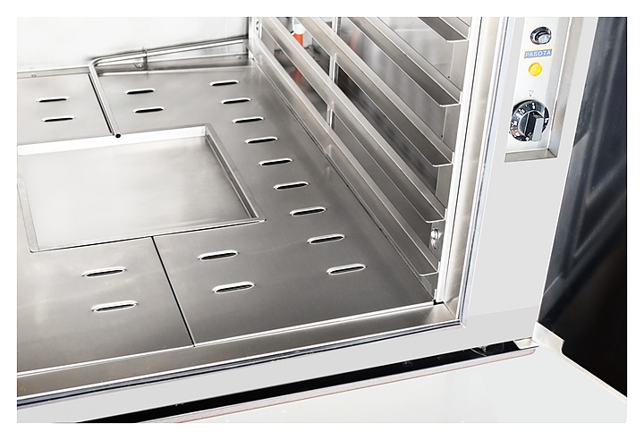 Расстоечный шкаф Abat ШРТ-12М используется в пекарнях, кондитерских и на предприятиях общественного питания и торговли для расстойки тестовых заготовок, в процессе которой тесто увеличивается в объеме и приобретает ровную поверхность, восстанавливается его пористость. Модель оснащена клапаном подачи воды в ванну, лотком для сбора конденсата и регулируемыми по высоте ножками. Камера и наружные поверхности выполнены из высококачественной нержавеющей стали. Дополнительные характеристики: