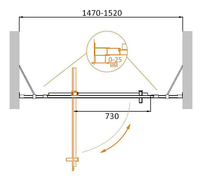 Дверь душевая CEZARES MOLVENO-BA-12-100+50-C-Cr-IV 150х195 см, в нишу, распашная