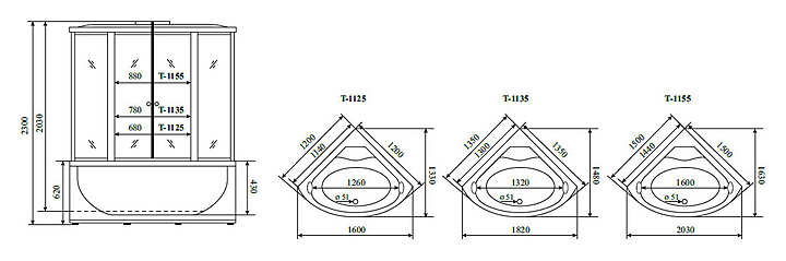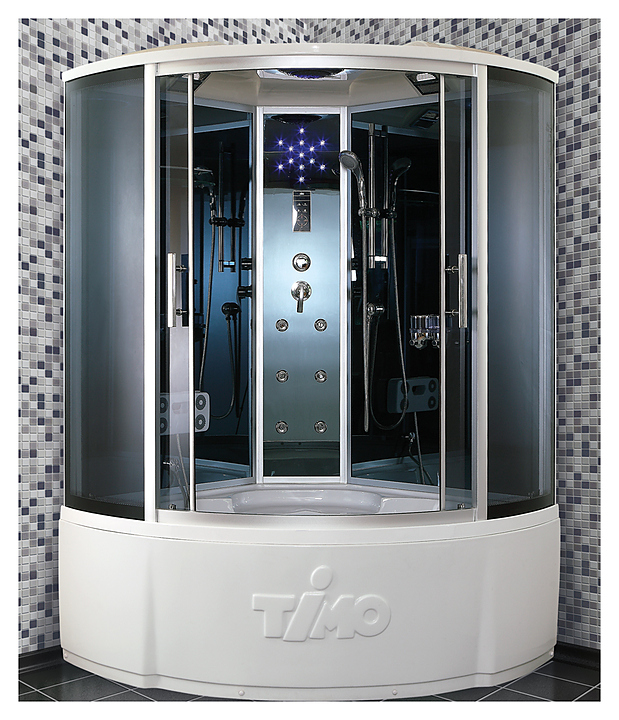 Душевая кабина TIMO Standart T-1155 предназначена для использования в ванных комнатах. Благодаря поддону в форме четверти круга модель можно вписать даже в ванные комнаты небольшой площади. Модель оснащена крышей, двумя раздвижными дверцами, высоким поддоном на усиленном металлическом каркасе, пятирежимным смесителем с ручной лейкой и тропическим душем, регулируемой по высоте штангой, встроенным сиденьем и подголовником, подсветкой, радио, полочкой, зеркалом и вентилятором. Поддон выполнен из качественного акрила, устойчивого к механическим повреждениям, обладающего высокой теплоемкостью, небольшим весом и повышенной шумоизоляцией. Особенности: