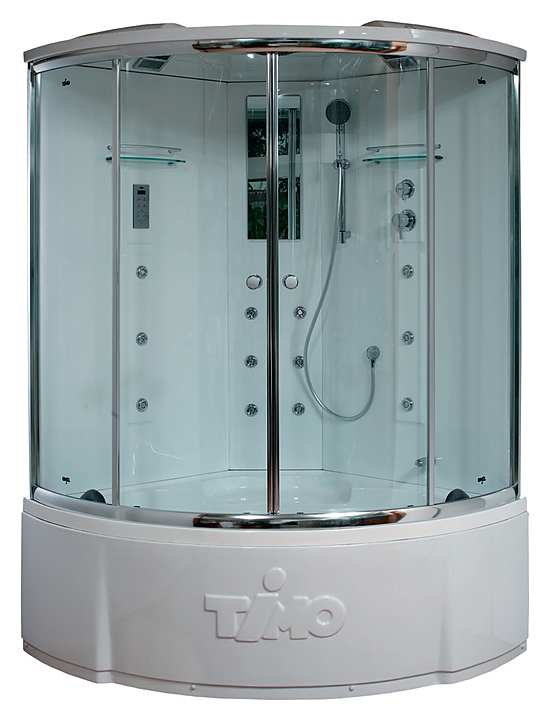 Душевая кабина TIMO Lux T-7735 Fabric Glass предназначена для использования в ванных комнатах. Благодаря поддону в форме четверти круга модель можно вписать даже в ванные комнаты небольшой площади. Модель оснащена крышей, двумя раздвижными дверцами, высоким поддоном на усиленном металлическом каркасе с возможностью наполнения водой, термостатическим смесителем, ручной лейкой с силиконовым шлангом и регулируемой по высоте штангой, тропическим верхним душем, точечным гидромассажем, сенсорной панелью управления, радио, подсветкой, двумя полочками, зеркалом, вентилятором и встроенным сиденьем. Поддон выполнен из качественного акрила, устойчивого к механическим повреждениям, обладающего высокой теплоемкостью, небольшим весом и повышенной шумоизоляцией.