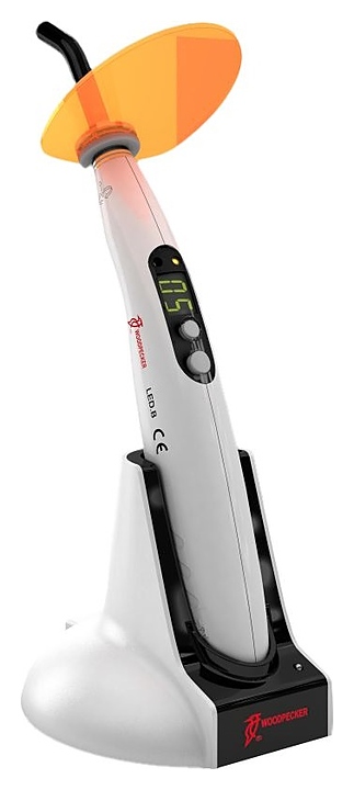 Лампа для светополимеризации Woodpecker LED B используется в стоматологических кабинетах и клиниках, в терапии, ортопедии и ортодонтии, для отверждения светочувствительных полимеров, композитных смол и адгезивов при проведении реставрационных работ, по принципу светового излучения, путем кратковременного воздействия. Для защиты от светового излучения между основным блоком и оптическим волокном полимеризационной лампы устанавливается световой фильтр с низкой пропускающей способностью. Модель оснащена цифровым ярким дисплеем и цифровой индикацией времени полимеризации. В комплект поставки входит лампа, световод, световой защитный фильтр, блок питания, и подставка-блок подзарядка. Особенности: