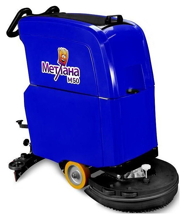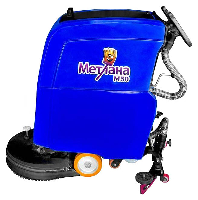Поломоечная машина Метлана М50E предназначена для уборки различных твердых поверхностей на предприятиях и в офисах, в складских комплексах и на различных предприятиях. Модель оcнащена вакуумным мотором и мотором привода щетки, колесами на подшипниках, не оставляющими следов, моющей щеткой и водосборной балкой. Корпус выполнен из ударопрочного полиэтилена, рама-тележка из 5-ти миллиметровой стали. В комплект поставки входит моющая щетка средней жесткости, водосборная балка с резиновыми лезвиями. Особенности: