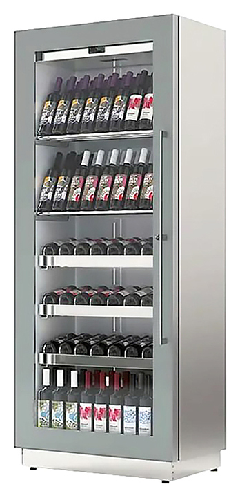 Винный шкаф Enofrigo MIAMI RF T+3 DR (A1MIAMIMIXP/421) предназначен для хранения вина при определенном уровне влажности и температуры в ресторанах, специализированных магазинах, отелях, подсобных складских помещениях, в частных домах или квартирах. Модель оснащена полками из трубок для наклонного размещения бутылок и 3 выдвижными ящиками для горизонтальной укладки. Корпус выполнен из ламината, рама двери - из анодированного алюминия, двери - стеклопакет из низкоэмиссионного стекла, полки - из нержавеющей стали, ящики - из дерева. Особенности: