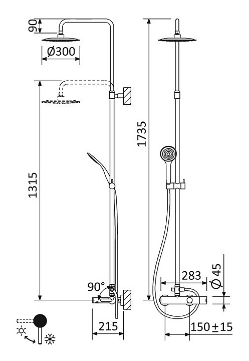 Душевая стойка CEZARES LEAF-CVDA-30-01 используется в ванных комнатах. Модель оснащена круглой лейкой и круглым верхним душем. Изделие выполнено из высококачественной латуни, которая отличается прочностью, долговечностью и устойчивостью к перепадам температур, а верхний душ изготовлен из прочной нержавеющей стали. В комплект поставки входят душевая лейка, настенный держатель, смеситель, шланг для душа. Особенности: