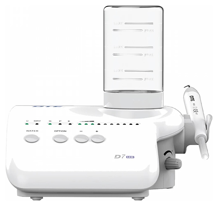 Ультразвуковой встраиваемый скайлер Woodpecker DTE-D7 LED используется в стоматологических кабинетах и клиниках для снятия никотинового налета, удаления зубного камня, кюретажа пародонтальных карманов, и эндодонтического лечения. Модель оснащена ножной педалью для удобства управления, и диафрагмовой помпой, обеспечивающей более высокое давление в системе подачи жидкости, а значит и лучшее распыление раствора. Насадки выполнены из нержавеющей стали. Комплектация: