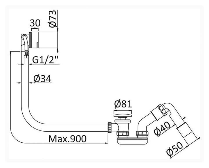 Слив-перелив CEZARES CZR-B-STW-NOP предназначен для установки с ваннами. Донный клапан оснащен механизмом ClickClack, при нажатии на крышку слив воды останавливается, а повторным нажатием слив воды продолжается. Особенности: