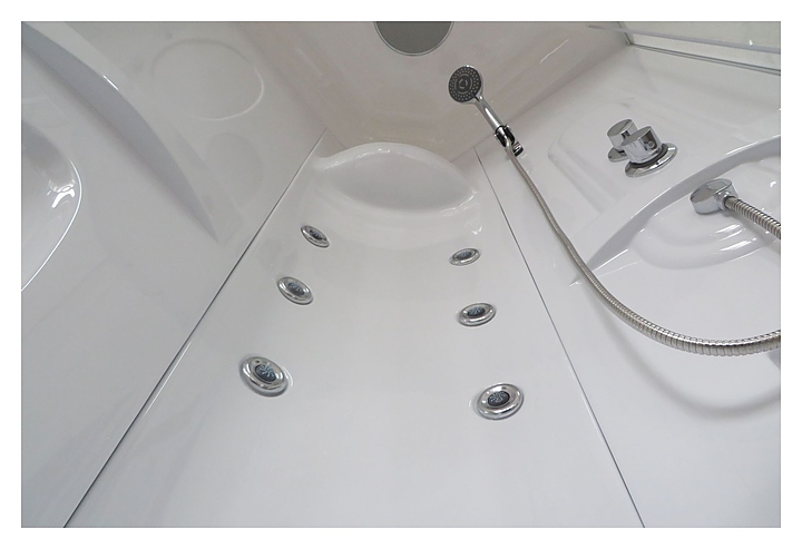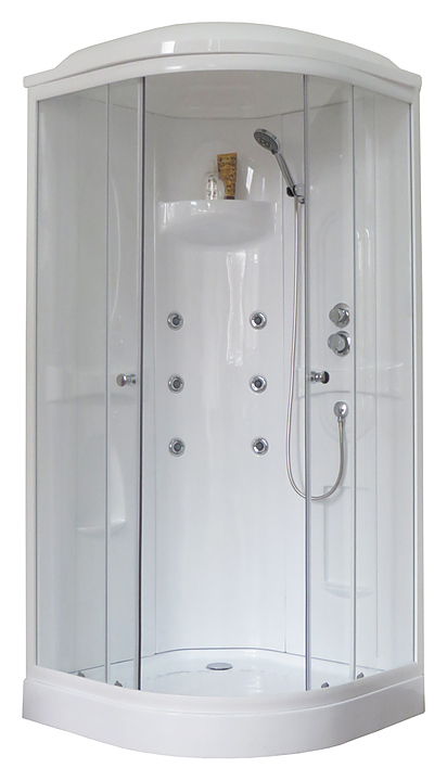 Душевая кабина Royal Bath RB90HK2-T предназначена для использования в ванных комнатах. Модель оснащена гидромассажной системой из 6 самоочищающихся форсунок, душевым гарнитуром, который включает в себя смеситель, тропический душ и эргономичную ручную лейку. Изделие выполнено из акрила, устойчивого к механическим повреждениям, обладающего небольшим весом и повышенной шумоизоляцией, безопасного закаленного стекла и усиленного алюминиевого профиля, чтобы обеспечить аккуратное скольжение раздвижных дверей, предусмотрены съемные подшипниковые ролики. Сифон входит в комплект поставки. Особенности: