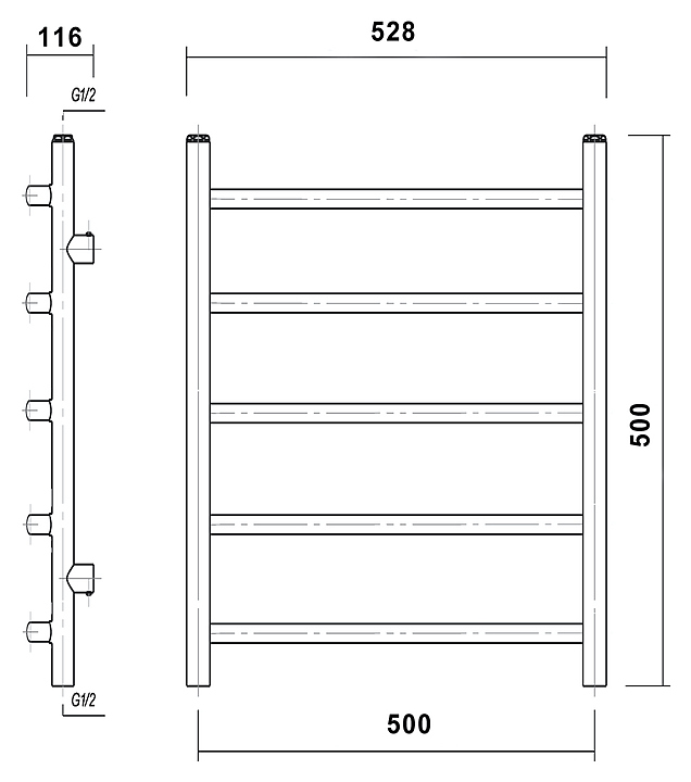 Водяной полотенцесушитель Domoterm Калипсо П5 50x50 см БЕЛ предназначен для подогрева и сушки полотенец, а также для обогрева ванных комнат в квартирах, коттеджах, частных домах. Модель оснащена пятью перекладинами для удобного использования. Изделие выполнено из нержавеющей стали, отличающейся прочностью, долговечностью и устойчивостью к перепадам температур. В комплект поставки входят крепления для установки, декоративные заглушки и кран Маевского. Характеристики: