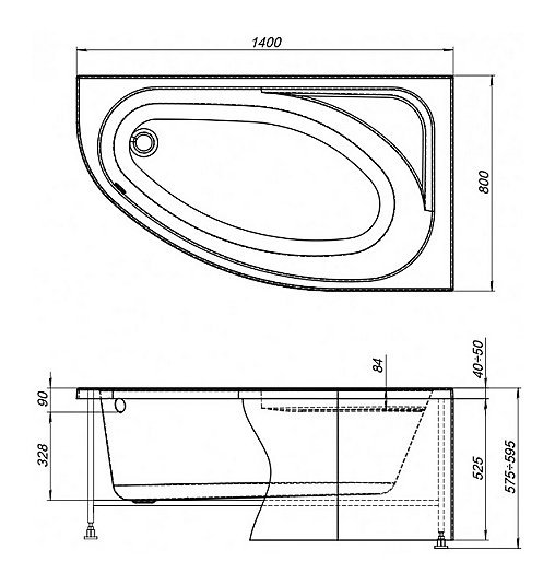 Ванна Aquanet Mia 140x80 R 140х80 см, акрил, правосторонняя