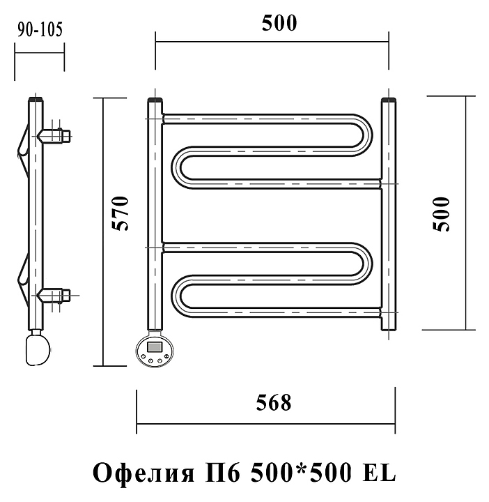 Полотенцесушитель электрический Domoterm Офелия П6 50x50 см EL, левый, хром