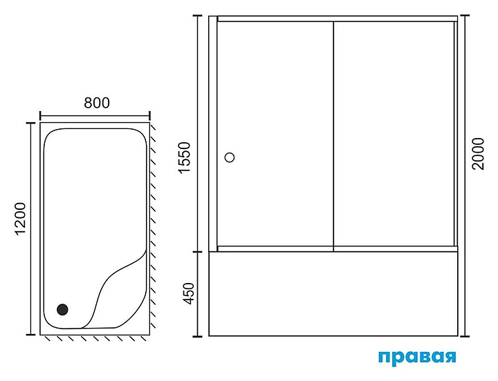 Уголок душевой Royal Bath RB 8120BP-T-R 120х80х200 см, прозрачное, белый профиль, правый