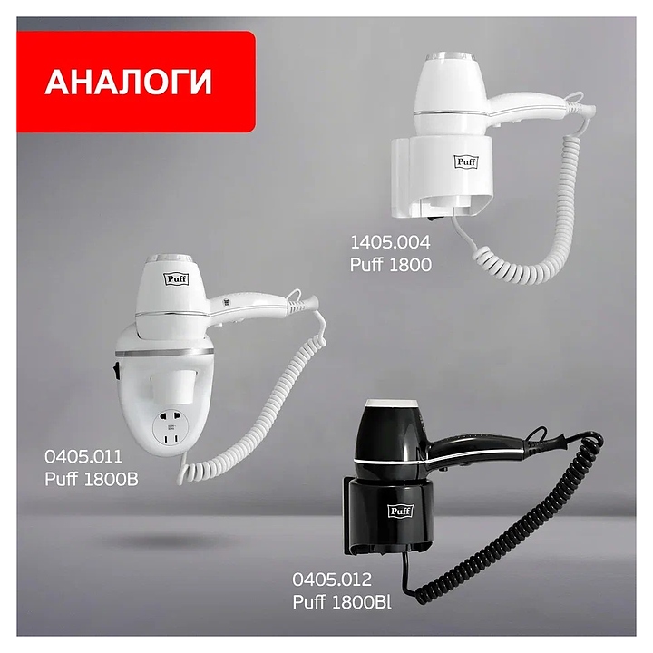 Настенный фен Puff 1800ВlB предназначен для быстрой сушки и комфортной укладки в спорткомплексах, фитнес-центрах, бассейнах, отелях, гостиницах, частных домах и квартирах. Модель оснащена кнопкой включения и выключения, дополнительной розеткой, 2 режимами сушки по скорости и температуре. Корпус выполнен из ударопрочного Nylon-пластика. В комплект поставки входят крепления. Особенности:
