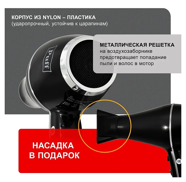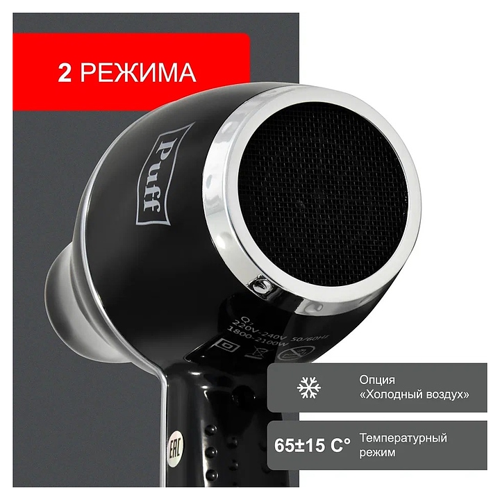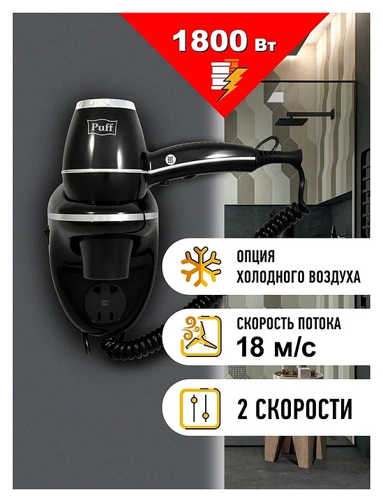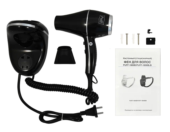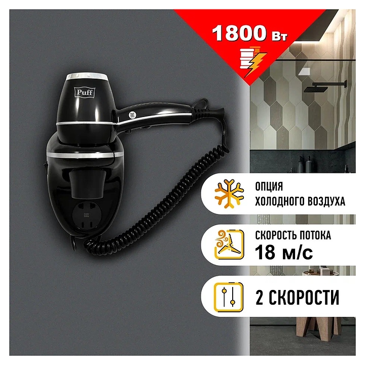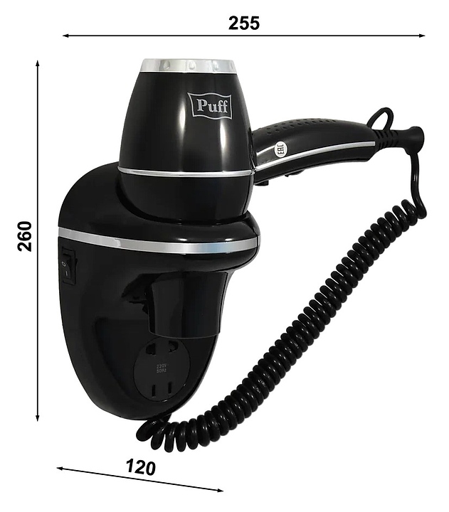 Фен настенный Puff 1800ВlB черный