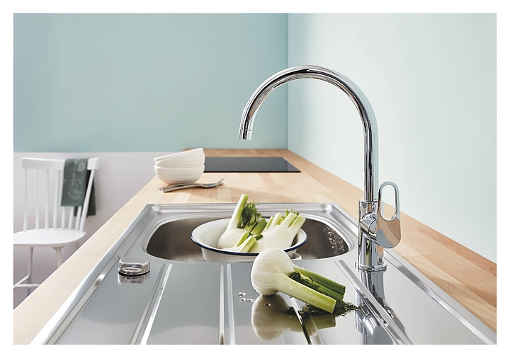 Смеситель для кухни Grohe BauFlow 31230001 предназначен для установки над кухонной мойкой и оснащен более длинным изливом для того, чтобы быть направленным ближе к центру мойки для удобства использования. Модель является частью коллекции BauFlow, что позволяет выдержать дизайн кухни и ванной комнаты в едином стиле. Однорычажный тип управления позволяет очень быстро и плавно регулировать подачу воды одной рукой. Изделие выполнено из высококачественной латуни, отличающейся прочностью, долговечностью и устойчивостью к перепадам температур. Особенности:
