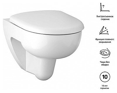Подвесной унитаз с инсталляцией и сиденьем Geberit Renova 500.124.TC.R выполнен в современном стиле. Благодаря подвесной конструкции унитаз не занимает много места в помещении, а свободное пространство под чашей делает уборку в ванной комнате гораздо легче. Безободковое исполнение позволяет предотвратить скопление бактерий и грязи на внутренней поверхности чаши и обеспечивает ее чистоту и гигиеничность использования. Изделие выполнено из санфарфора, который обладает повышенной прочностью и устойчивостью к негативным внешним факторам, а также долгое время сохраняет идеальную белизну и не впитывает запахи и грязь. Сиденье выполнено из дюропласта, обладающего повышенной устойчивостью к механическим воздействиям, влажности и средствам дезинфекции, а также антибактериальным эффектом. Встроенный механизм микролифта не дает сиденью резко опускаться, обеспечивая бесшумное использование, и предотвращает появление трещин, царапин и сколов на изделии. В комплект поставки входят унитаз 500.801.00.1 c сиденьем с крышкой, инсталляция 458.124.21.1 с звукоизоляцией, крепления к стене и монтажный уголок. Кнопка смыва Delta21. Особенности: