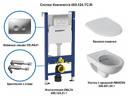 Унитаз подвесной с инсталляцией и сиденьем Geberit Renova 500.124.TC.R