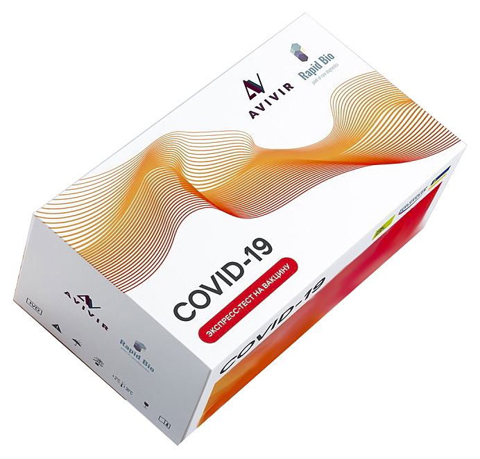 Набор экспресс-тестов Rapid Bio Avivir SARS-CoV-2-ИХА используется в специальных лабораториях и больницах, а также в домашних условиях для выявления наличия антител к коронавирусу в крови для диагностирования иммунитета после вакцинации. Тест основан на качественном мембранном иммунохроматографическом анализе и рекомендуется для проведения через 2 недели после введения второго компонента вакцины, а также раз в 6 месяцев для оценки необходимости ревакцинации. В комплект поставки входят 20 тест-картриджей, 20 одноразовых скарификаторов, 20 пластиковых пипеток для переноса образцов, 20 спиртовых салфеток, флакон-капельница с буферным раствором (3 мл) и паспорт. Особенности: