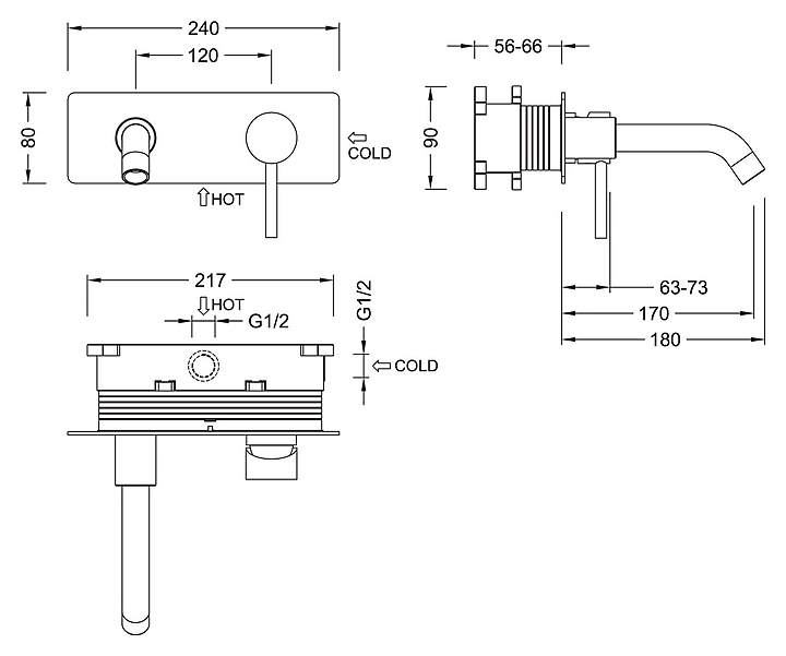 Смеситель для раковины TIMO Saona 2371/03SM встраиваемый, черный матовый