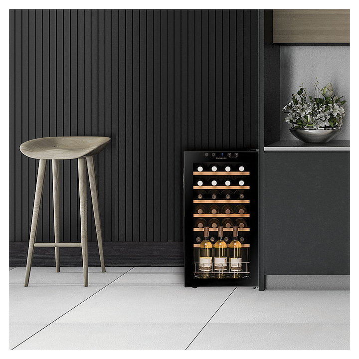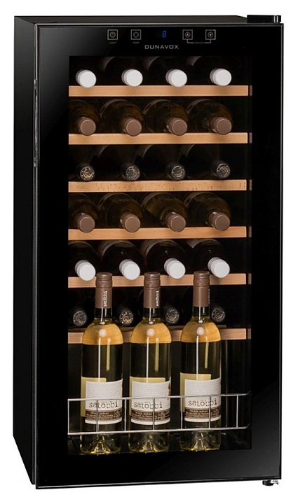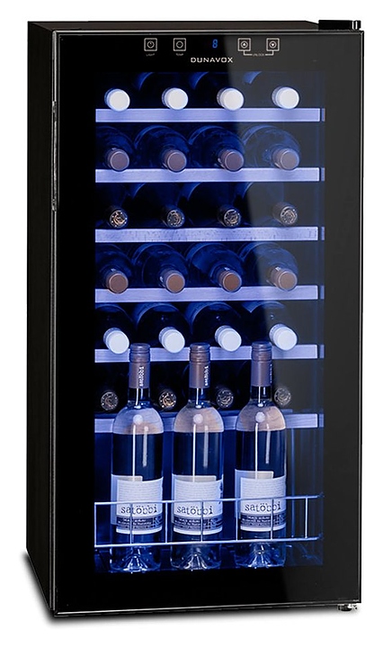 Винный шкаф Dunavox DXFH-28.88 предназначен для демонстрации, хранения и создания оптимальных условий для сохранения всех вкусовых свойств вина в бутылках на предприятиях общественного питания, торговли, в барах, ресторанах, специализированных магазинах, частных домах или квартирах. Модель оснащена сенсорной панелью управления и электронным термостатом. Корпус выполнен из стали, дверь - из рамы черного цвета и двойного тонированного стекла с защитой от ультрафиолетовых лучей, выдвижные полки - из массива бука. Особенности: