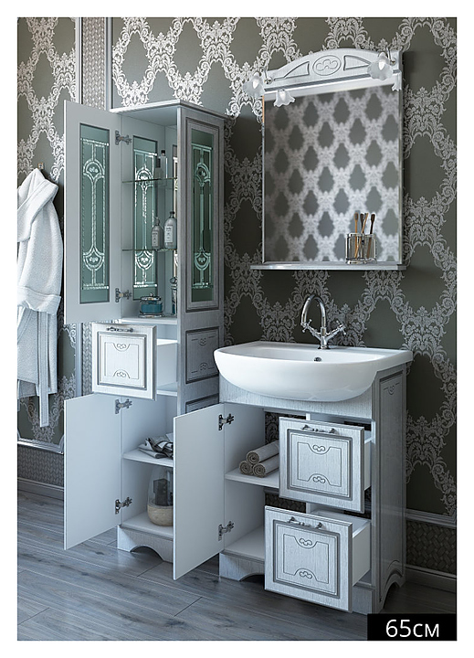 Шкаф-пенал Sanflor Адель выполнен в классическом стиле. Благодаря изящной отделке и классическим формам мебель станет украшением любой ванной комнаты. Модель оснащена 2 дверцами, 3 полками и 1 ящиком с механизмом плавного закрытия. Корпус мебели выполнен из МДФ с лаковым покрытием. Шкаф-пенал является частью гарнитура для ванной комнаты Адель. Особенности: