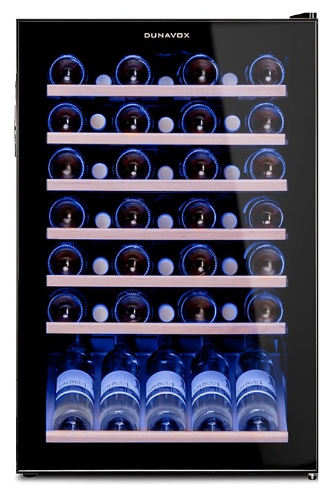 Винный шкаф Dunavox DXFH-48.130 предназначен для демонстрации, хранения и создания оптимальных условий для сохранения всех вкусовых свойств вина в бутылках на предприятиях общественного питания, торговли, в барах, ресторанах, специализированных магазинах, частных домах или квартирах. Модель оснащена механическим термостатом. Корпус выполнен из стали, дверь - из рамы черного цвета и двойного тонированного стекла с защитой от ультрафиолетовых лучей, выдвижные полки - из массива бука. Особенности:
