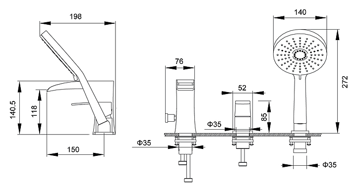 Встраиваемый смеситель для ванны с душем TIMO Lumi 4210/00Y предназначен для установки на борт ванны для подачи горячей и холодной воды. Серия выполнена в современном стиле. Модель оснащена каскадным изливом и душевым гарнитуром, включающим в себя двухрежимную ручную лейку, полутораметровый душевой шланг и держатель для ручной лейки. Изделие выполнено из высококачественной латуни, отличающейся прочностью, долговечностью и устойчивостью к перепадам температур. В комплект поставки входят смеситель, каскадный излив, переключатель потоков, держатель ручной лейки, ручная лейка, душевой шланг, подводка и противовес. Особенности: