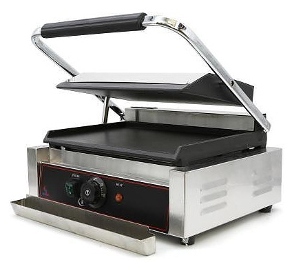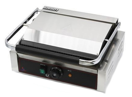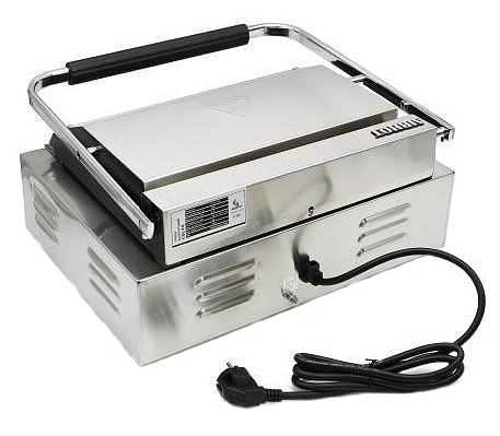 Прижимной гриль Airhot CGL-FF предназначен для жарки мяса, птицы, рыбы, овощей, а также для приготовления стейков, гамбургеров и горячих сэндвичей на предприятиях общественного питания и торговли. Высокая скорость приготовления достигается благодаря встроенным в обе части аппарата тепловым элементам, которые плотно прилегают к продукту. Модель оснащена терморегулятором и съёмным поддоном для сбора жира и крошек. Корпус выполнен из нержавеющей стали, жарочная поверхность - из чугуна с антипригарным покрытием. Дополнительные характеристики: