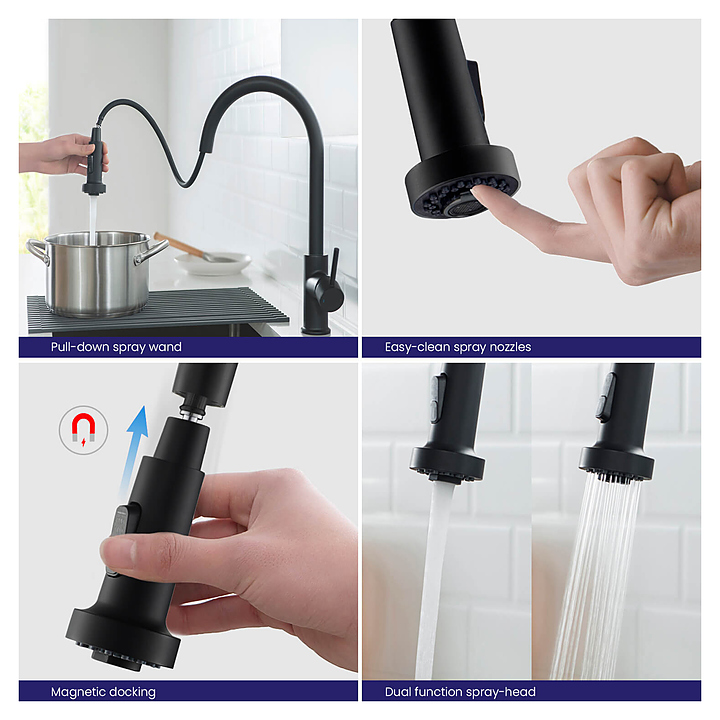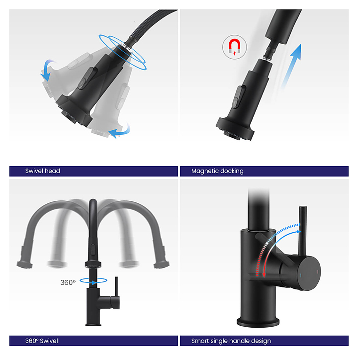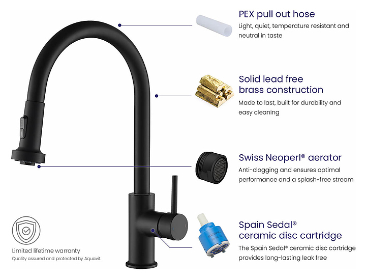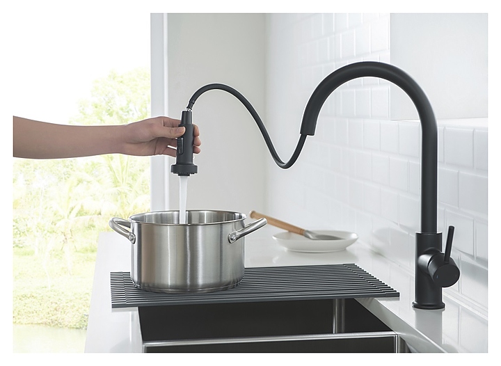 Смеситель для кухни TIMO Saona 2316/03FL с выдвижной лейкой, черный