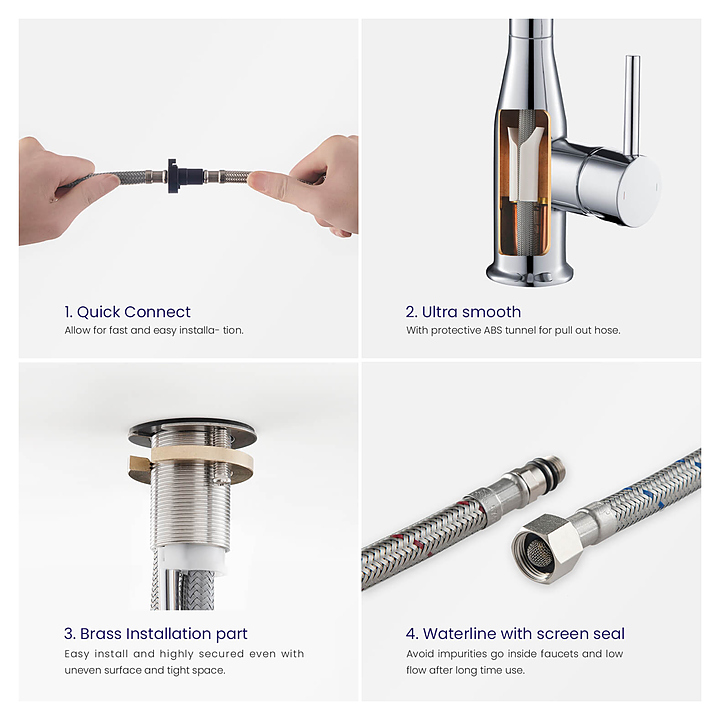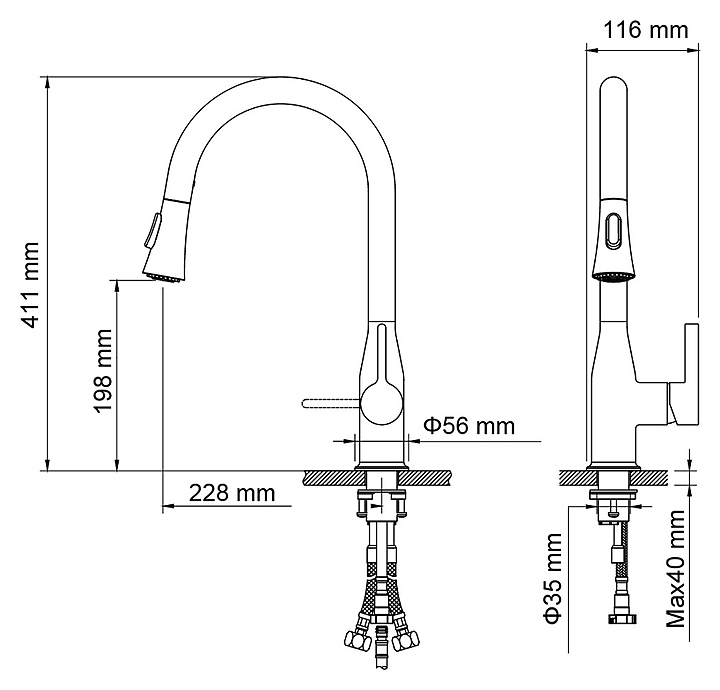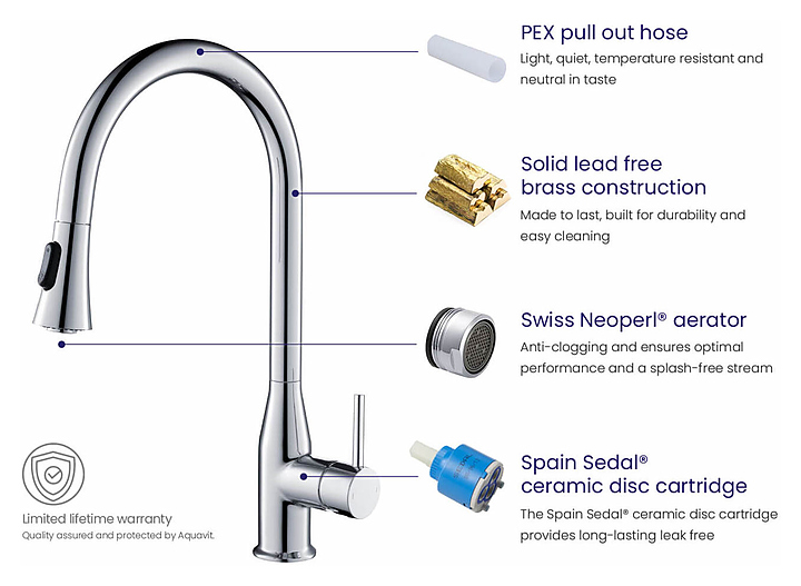 Смеситель для раковины TIMO Saona 2336/00FL предназначен для использования в кухонных помещениях для подачи горячей и холодной воды. Серия выполнена в современном стиле. Модель оснащена выдвижной лейкой с магнитным держателем, который позволяет легко и точно возвращать лейку в начальное положение, керамическим картриджем, обеспечивающим плавный ход рычага смесителя, контроль и точность при выборе напора и температуры воды, а также аэратором для создания мягкой ровной струи без разбрызгивания. Изделие выполнено из высококачественной латуни, отличающейся прочностью, долговечностью и устойчивостью к перепадам температур. В комплект поставки входят корпус смесителя, выдвижная лейка, шланг, гибкая подводка, противовес и крепления. Особенности: