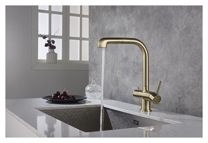 Смеситель для кухни TIMO Saona 2346/02FL с подключением фильтра и выдвижной лейкой, антик