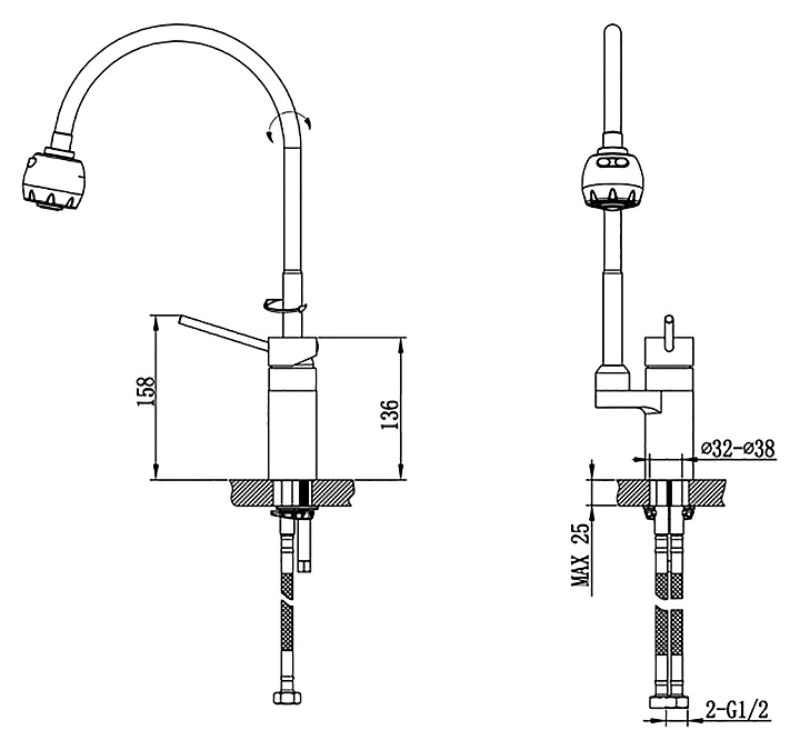 Смеситель для кухни TIMO Saona 2308F с гибким изливом, хром