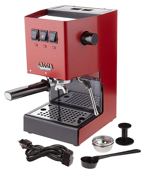 Кофеварка Gaggia Classic Red используется в офисах, на предприятиях общественного питания и торговли, а также в домашних условиях для приготовления кофе эспрессо, капучино, американо и других кофейных напитков. Корпус полностью выполнен из нержавеющей стали, кофейная группа и портафильтр - из хромированной латуни, каплесборник - из нержавеющей стали и пластика. В комплект поставки входят 3 фильтра (для кофе в чалдах и молотого кофе), дозатор молотого кофе и темпер. Особенности: