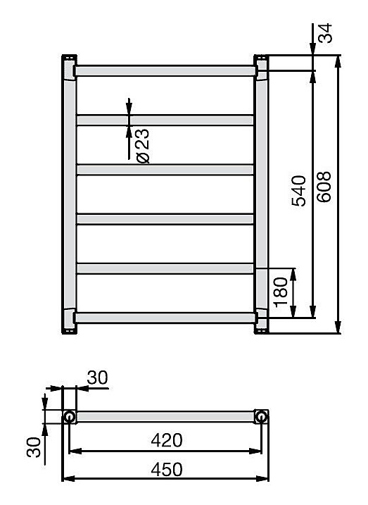 Водяной полотенцесушитель Zehnder Stalox STX-060-045 предназначен для подогрева и сушки полотенец, а также для обогрева ванных комнат в квартирах, коттеджах, частных домах. Модель оснащена 6 перекладинами для удобного использования. Изделие выполнено из нержавеющей стали, отличающейся прочностью, долговечностью и устойчивостью к перепадам температур. Дополнительные характеристики: