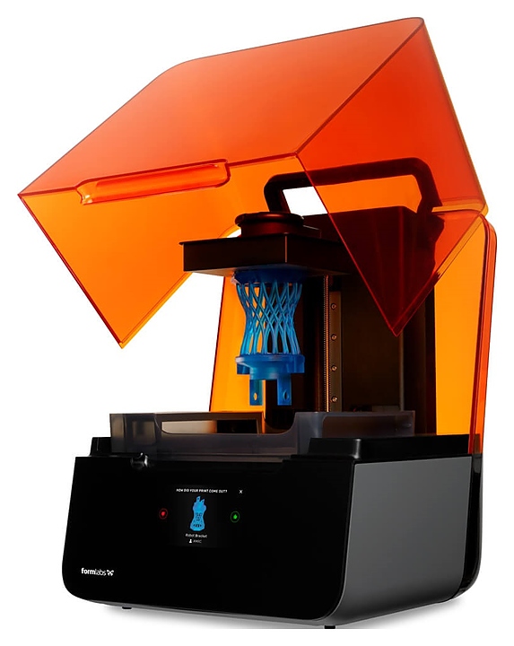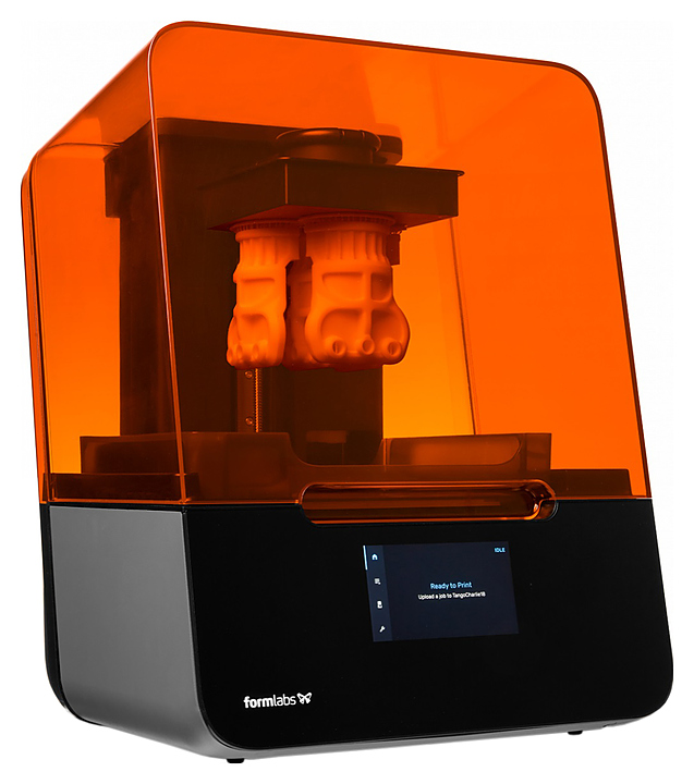 3D-принтер Formlabs Form3 используется в зуботехнических лабораториях, стоматологических кабинетах и клиниках для печати стоматологических 3D-моделей. Модель оснащена сенсорным дисплеем, Wi-Fi, Ethernet, USB 2.0, индуктивным датчиком для определения уровня фотополимера внутри ванночки, специальным датчиком для отслеживания упругости и натяжения тефлоновой пленки, отдельной коробкой для хранения ванночки, 3-мя магнитами на блоке засветки для активации миксера, платой с датчиком для активации и контроля процесса перемешивания и нагревателем с феном, расположенными сзади, для нагрева фотополимера внутри ванночки. В комплект поставки входит 1 сменный коврик. Дополнительные коврики приобретаются отдельно. Особенности: