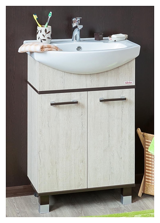 Тумба с раковиной Sanflor Толедо 50 см правосторонняя, венге, северное дерево светлое