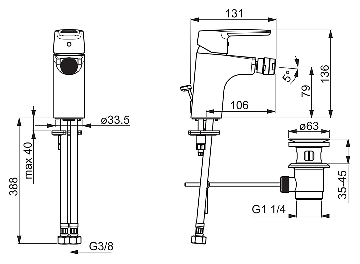 Смеситель для биде Oras Saga New 3918F с донным клапаном