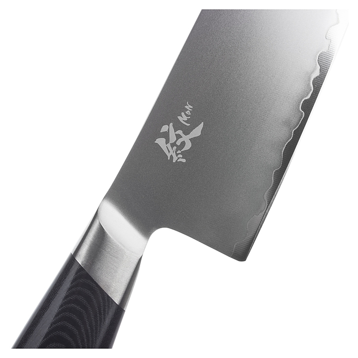 Кухонный нож YAXELL Gyuto YA36300 серии Mon предназначен для нарезки продуктов на предприятиях общественного питания и торговли и для домашнего применения. Лезвие изготовлено из сверхпрочной стали VG-10 Cobalt-Molybdenum-Vanadium в обкладке из высококачественной нержавеющей стали, рукоять - из черного полимерного материала Canvas Micarta на основе льняного полотна и смолы, заклепки рукояти и больстеры - из нержавеющей стали. Особенности:
