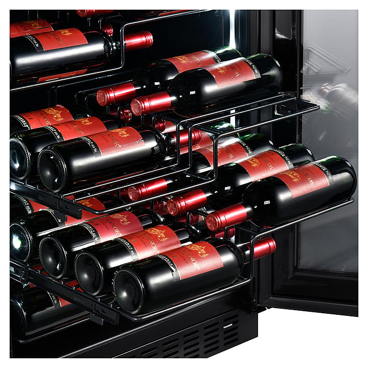 Винный шкаф Temptech Copenhagen CPROX60SRB предназначен для охлаждения, хранения и демонстрации бутилированного вина в отелях, винных магазинах, на предприятиях общественного питания и торговли. Модель оснащена сенсорной панелью с дисплеем, 4 полностью выдвижными полками с возможностью просмотра этикеток, дверцей со встроенной ручкой, фильтром с активированным углем и белой светодиодной подсветкой. Дверца выполнена из трехслойного стекла, заполненного аргоном и с защитой от УФ-лучей, передняя панель - из черного стекла. Особенности: