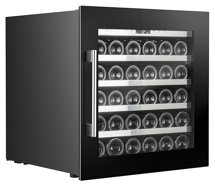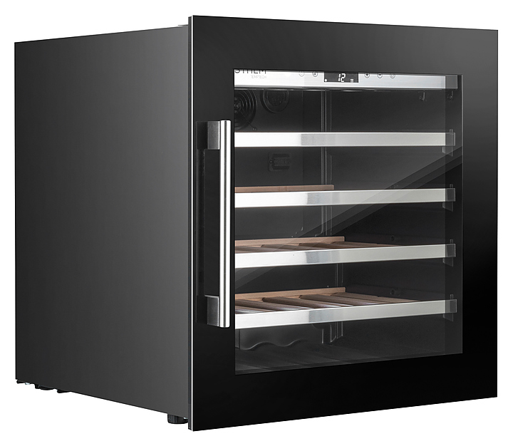 Винный шкаф Temptech STHLM STZ60SB предназначен для охлаждения, хранения и демонстрации бутилированного вина в отелях, винных магазинах, на предприятиях общественного питания и торговли. Модель оснащена сенсорной панелью с дисплеем для регулировки температуры и освещения, 4 выдвижными полками, фильтром с активированным углем и белой светодиодной подсветкой. Дверца выполнена из двухслойного стекла, заполненного аргоном, с защитой от УФ-лучей, передняя панель - из черного стекла, ручка - из нержавеющей стали, полки - из необработанного бука с деталями из нержавеющей стали. Особенности: