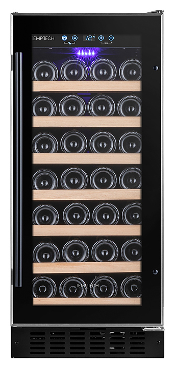 Винный шкаф Temptech Premium WPQ38SCB предназначен для охлаждения, хранения и демонстрации бутилированного вина в отелях, винных магазинах, на предприятиях общественного питания и торговли. Модель оснащена сенсорной панелью с дисплеем для регулировки температуры и освещения, 7 выдвижными полками, фильтром с активированным углем и синей светодиодной подсветкой. Дверца выполнена из двухслойного стекла с защитой от УФ-лучей, передняя панель - из черного стекла, полки - из бука. Особенности: