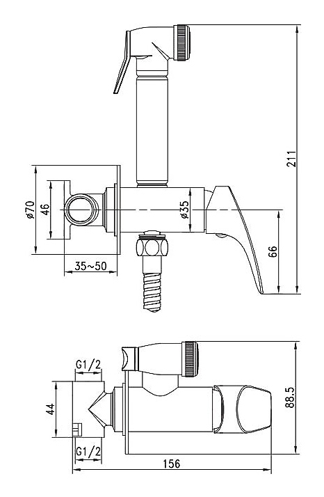 Смеситель для биде с гигиеническим душем Aquanet Atletic AF310-52C