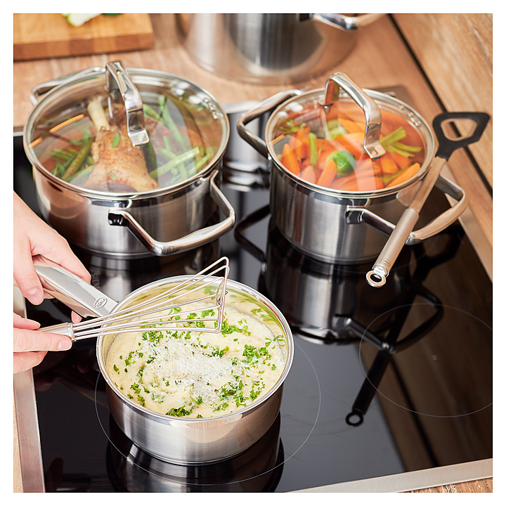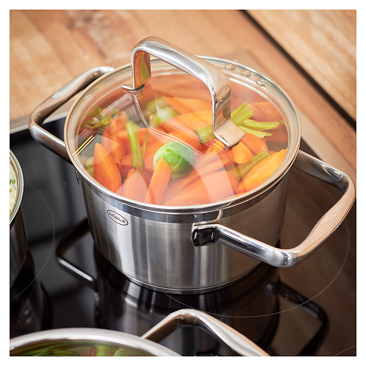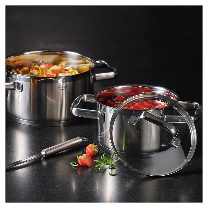 Кастрюля ROESLE Charm используется на предприятиях общественного питания и торговли, в частных домах и квартирах для приготовления широкого спектра блюд. Модель оснащена изогнутыми эргономичными ручками и крышкой. Изделие выполнено из высококачественной безопасной матовой нержавеющей стали 18/10 с полированным ободком, крышка - из закаленного стекла Sodalime. Особенности: