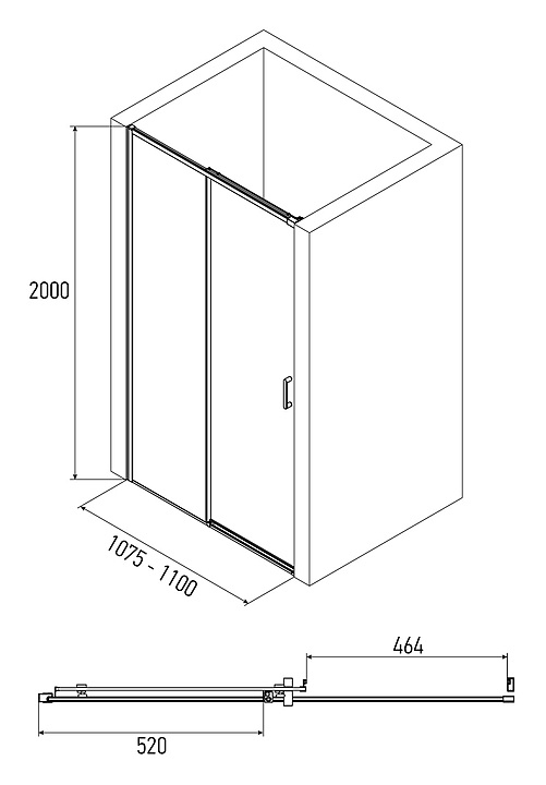 Дверь душевая ALEX BAITLER AB64B110 110х200 см, в нишу, раздвижная