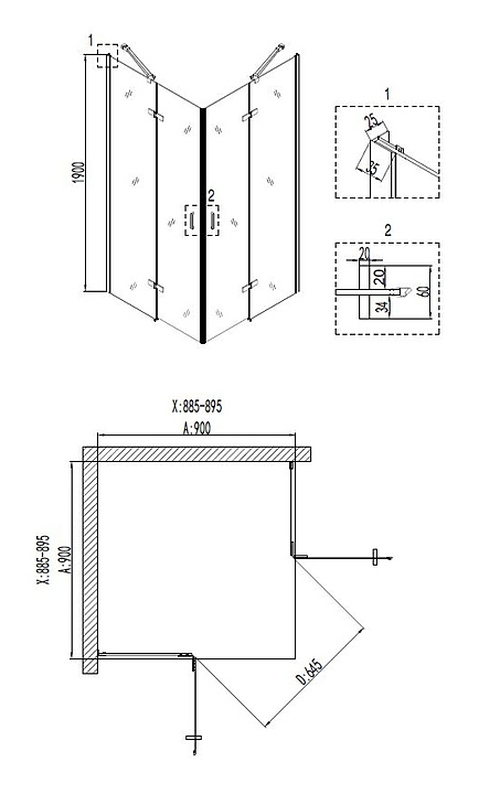 Артикул Душ. ограждение NG-6813-08 BLACK (90*90*190) квадрат, две двери распашные, 1 место
