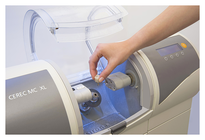 Шлифовально-фрезерный станок Dentsply Sirona inLab MC XL используется в зуботехнических лабораториях, стоматологических кабинетах и клиниках для изготовления вкладок, накладок, виниров и коронок. Модель оснащена холдером для инструментов и запасным набором с 4-мя шлифовальными фрезами, предназначенными для обработки разных материалов. Особенности: