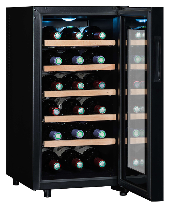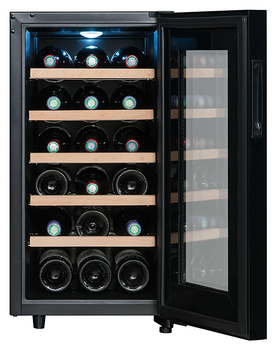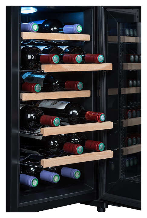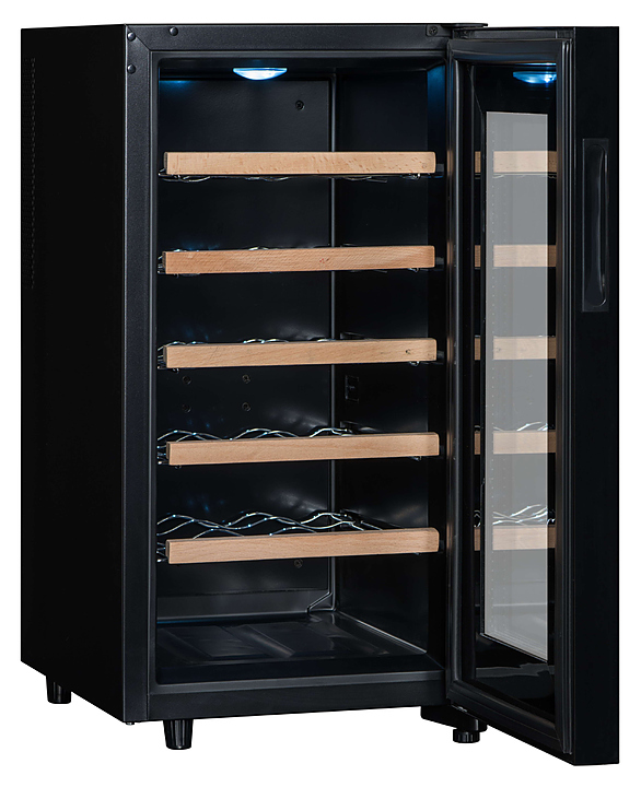 Винный шкаф Climadiff CC18 предназначен для хранения вина при определенном уровне влажности и температуры в ресторанах, специализированных магазинах, отелях, подсобных складских помещениях, в частных домах или квартирах. Модель оснащена сенсорным цифровым дисплеем и подсветкой. Особенности: