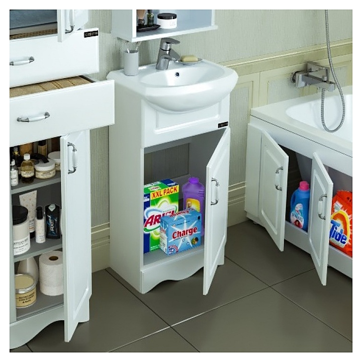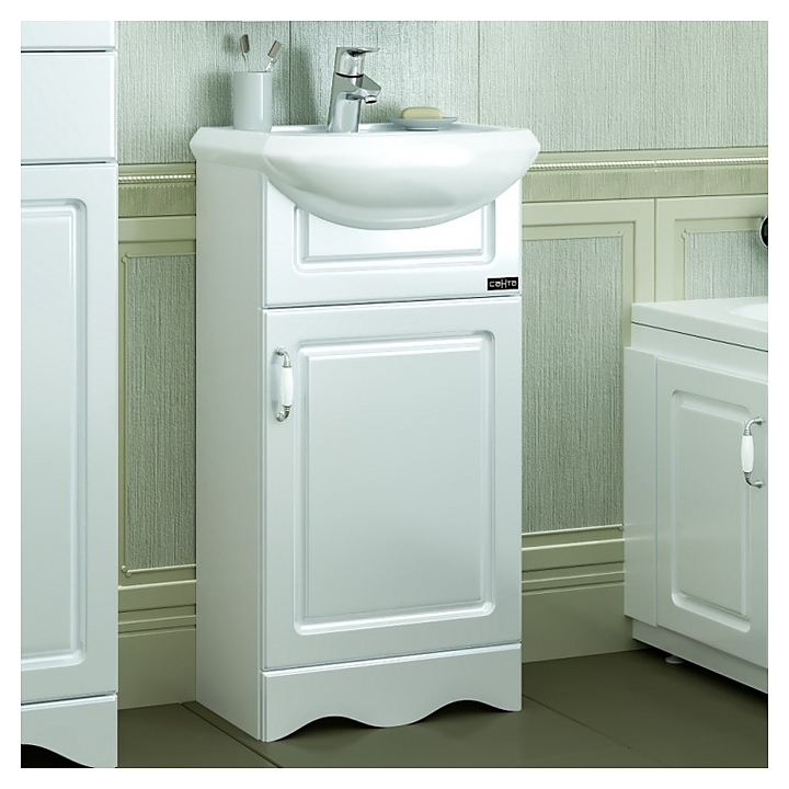 Тумба под раковину СаНта Верона 45 дополнит интерьер ванной комнаты. Модель оснащена распашной дверцей. Корпус выполнен из влагостойкой ЛДСП, фасад - из МДФ и покрыт пленкой для защиты поверхности от внешних воздействий. Тумба используется вместе с раковиной Уют 45. В комплект поставки входит ручка.