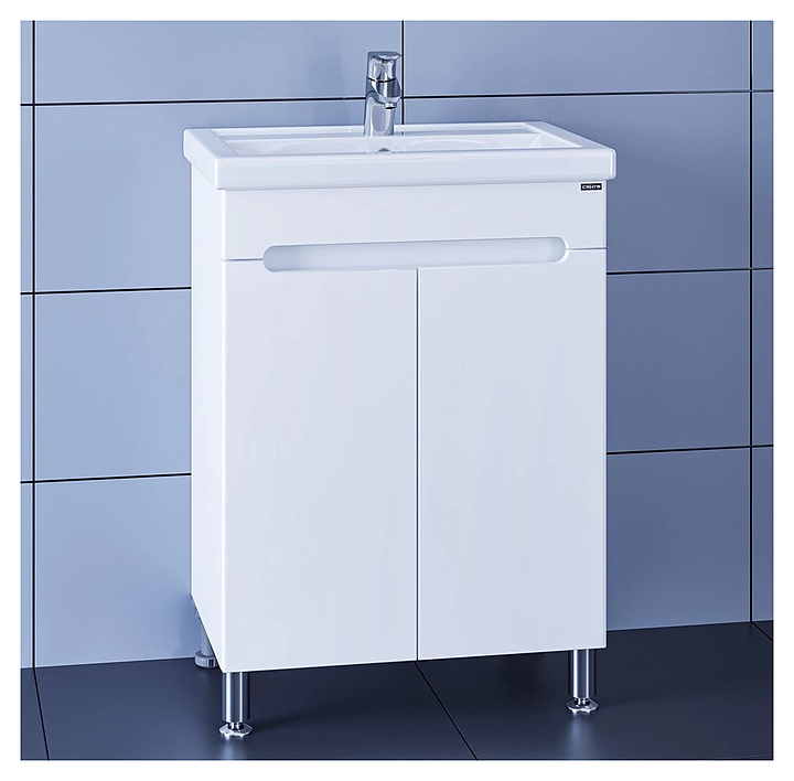 Тумба под раковину СаНта Лондон 60 дополнит интерьер ванной комнаты. Модель оснащена 2 распашными дверцами и ножками, защищающими конструкцию от воздействия влаги в случае намокания пола. Корпус выполнен из влагостойкой ЛДСП, фасад - из МДФ и покрыт пленкой для защиты поверхности от внешних воздействий. Тумба используется вместе с раковиной Фостер 60. В комплект поставки входят 2 хромированные и 2 пластиковые ножки. Особенности: